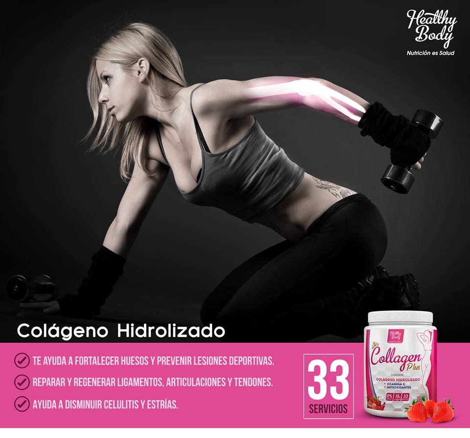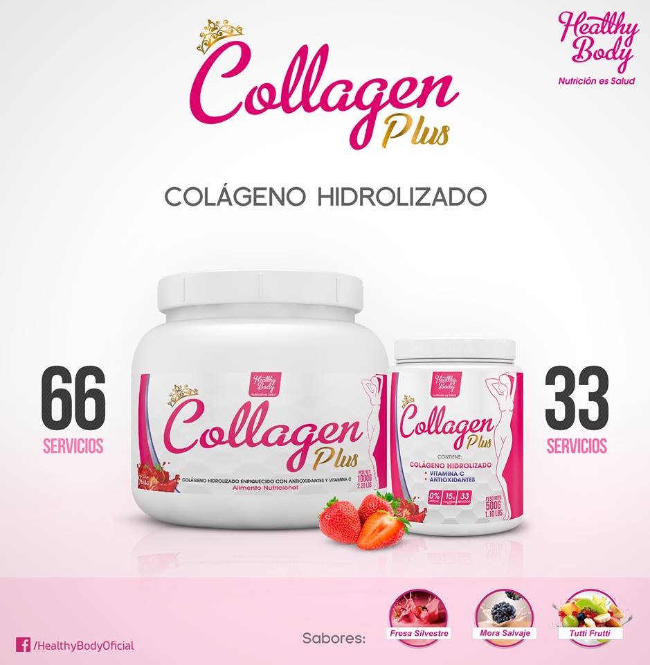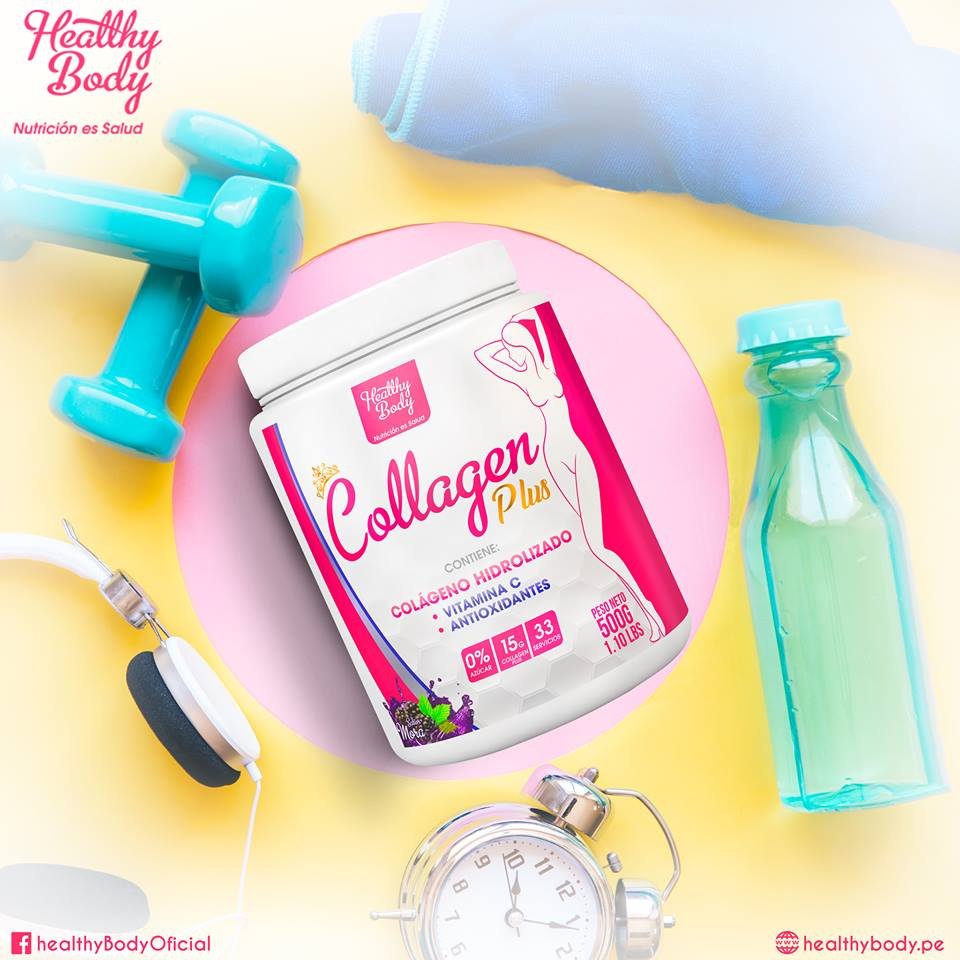 HEALTHY BODY, pensando en la mujer de hoy, ha creado un complemento que la ayudará a mantenerse saludable y hermosa ¡SIEMPRE JOVEN, SIEMPRE BELLA! COLLAGEN PLUS es un producto que complementa la alimentación diaria, está desarrollado mediante una fórmula innovadora en polvo que contiene Colágeno Hidrolizado. El cuerpo no puede producir la Vitamina C por sí solo, por lo tanto, es importante incluir muchos alimentos que contengan esta vitamina en la dieta diaria, COLLAGEN PLUS está enriquecido con Vitamina C, además lo puede encontrar con deliciosos sabores tropicales.