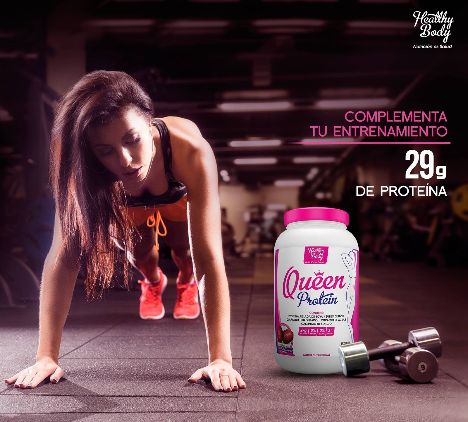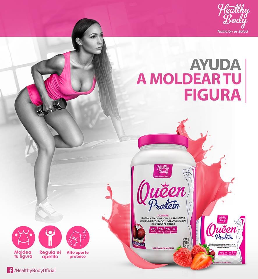 QUEEN PROTEIN es un excelente complemento alimenticio que apoya la recuperación corporal y muscular aportando los nutrientes necesarios como las proteínas para cumplir esta función gracias a sus innovadores ingredientes como el Suero de Leche, el Caseinato de Calcio, Proteína Aislada de Soya, además como si fuera poco también contiene Colágeno Hidrolizado y Extracto de Pulpa de Aguaje que juntos intervendrán efectivamente en la regeneración corporal y poder lucir una mejor figura.